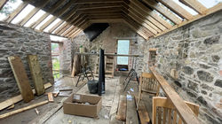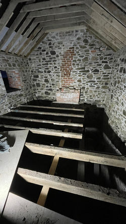Pointing, lintel replacement, floorboard removal, stair trimmer, three new joist, roof parging, hessian, insulation and laths.