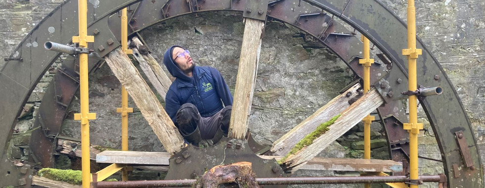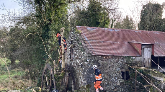 We have to give a special mention to Ciaran and his team from TreeworX who not only helped us with the rotted ash trees that threatened to fall on the mill, and not so rotted ash trees that grew through the shelling wheel, but also came in the middle of the night to cut down bits of dead alder (that would have surely fallen on the caravan during the mad winds two weeks later), and gifted us some wonderful timbers for the lintels! We are going to have to do a separate post with some impressive time-lapses but here's just a few shots: